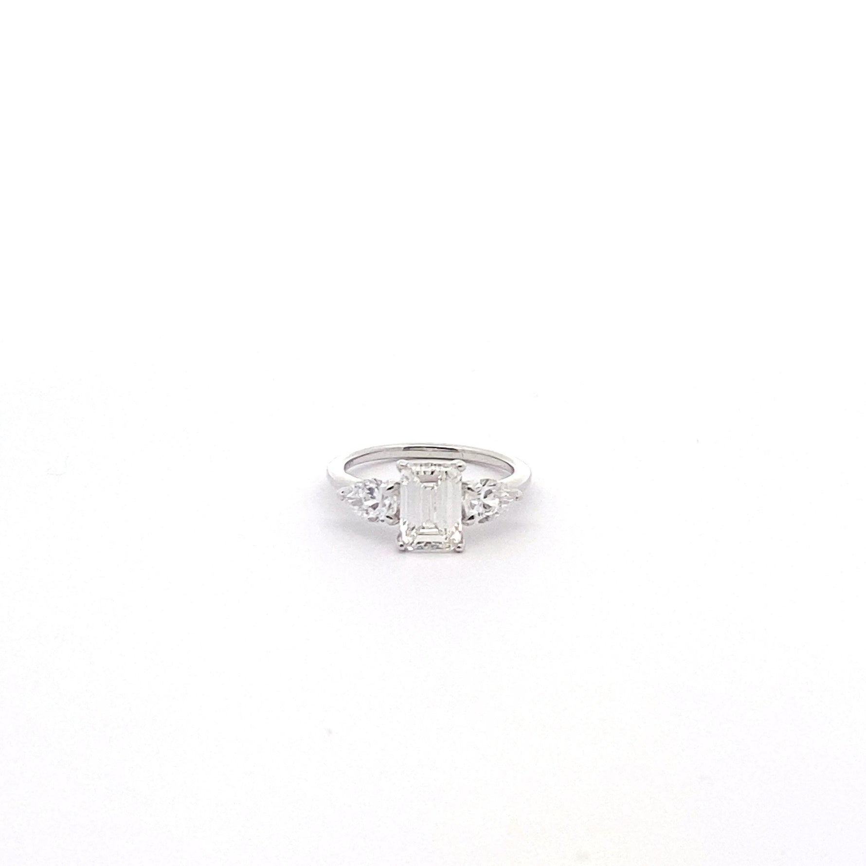 14K White Gold 3.00 cttw Lab Grown Diamond Emerald And Pear Shape Engagement Ring