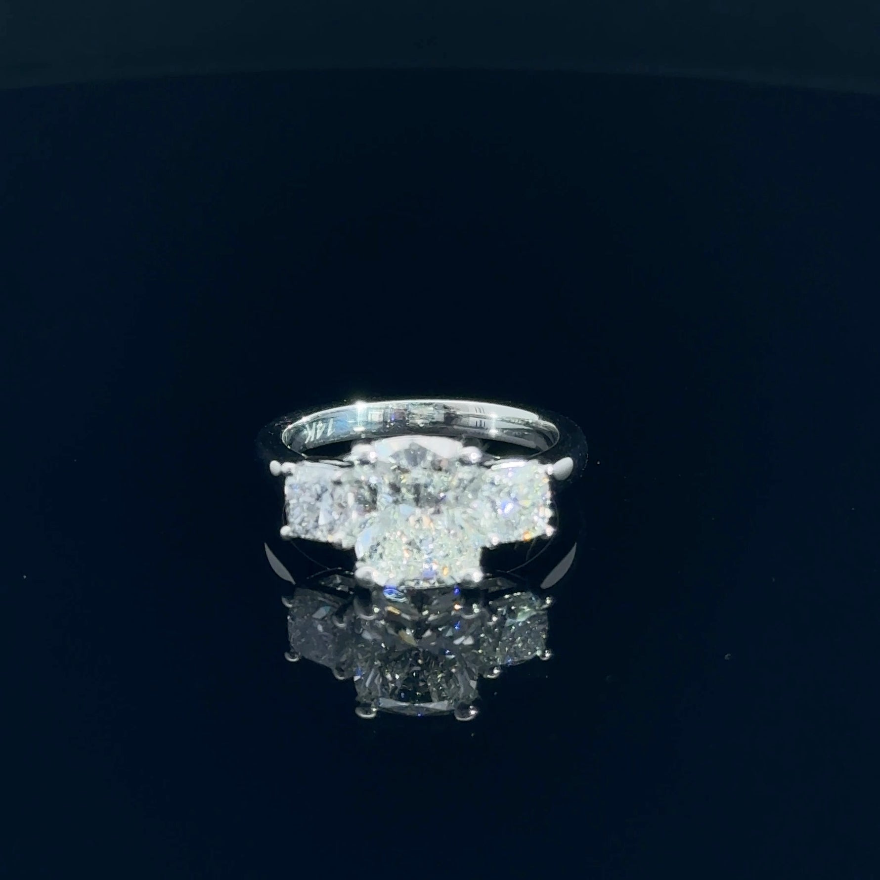 14K White Gold 3 Stone 3.01 cttw Cushion Cut Lab Grown Diamond Engagement Ring