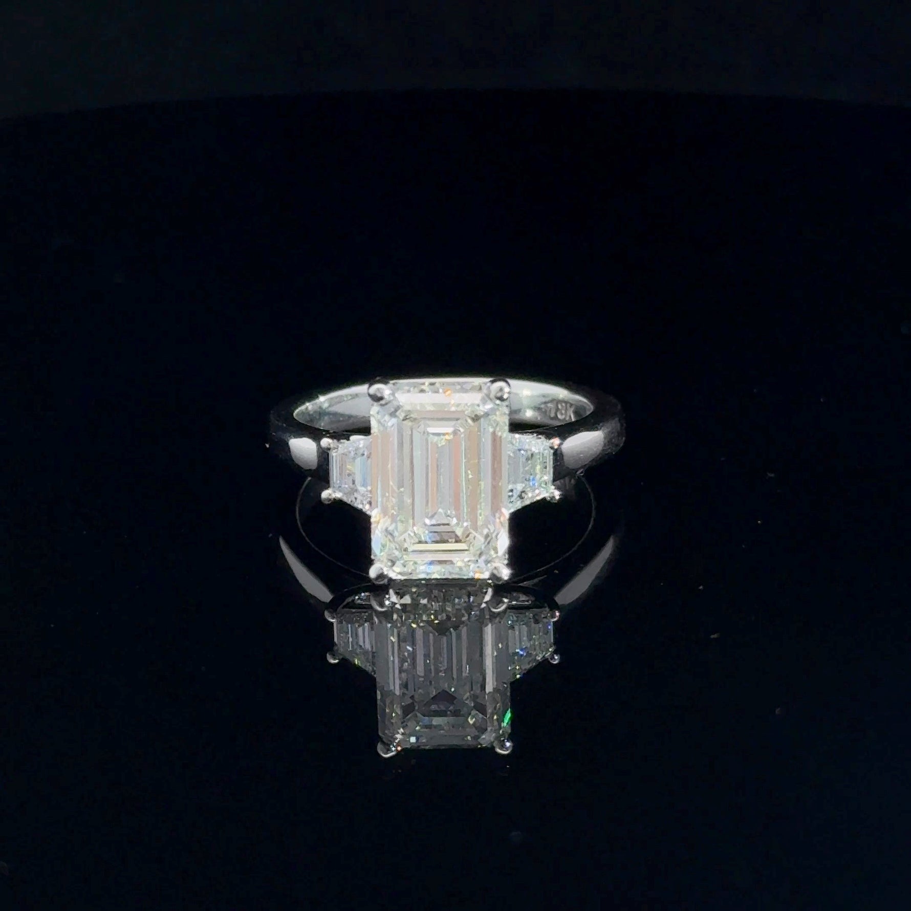 18K White Gold 3 Stone 4.24 cttw Emerald Cut Lab Grown Diamond Engagement Ring