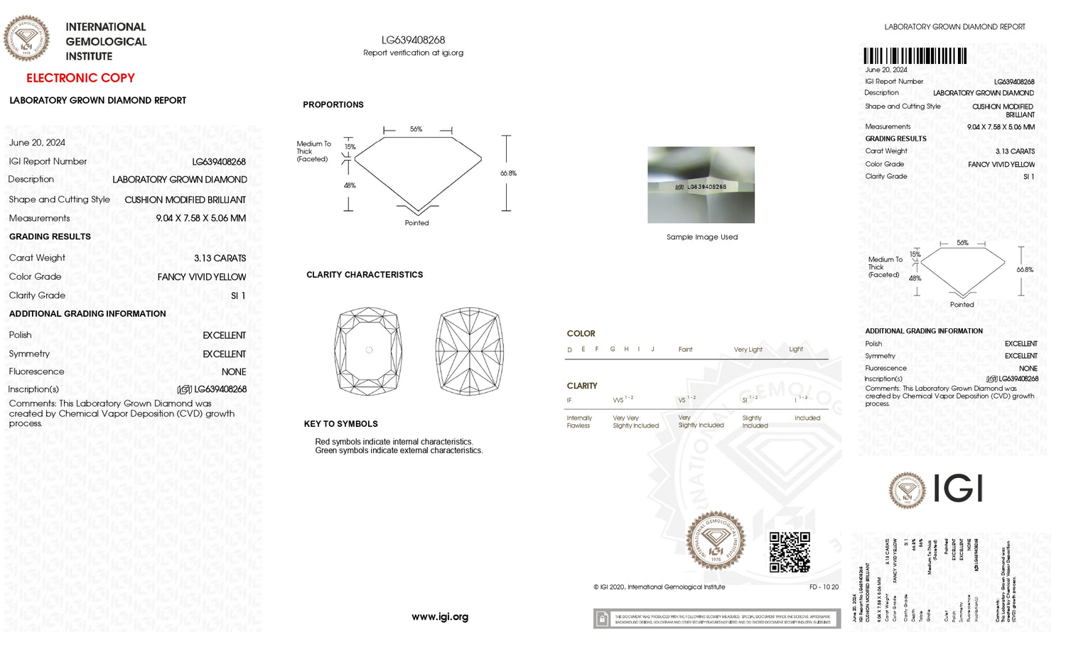 This is the report that details the unique characteristics of your diamond, issued by IGI—one of the most recognized and trusted gemological laboratories in the world.