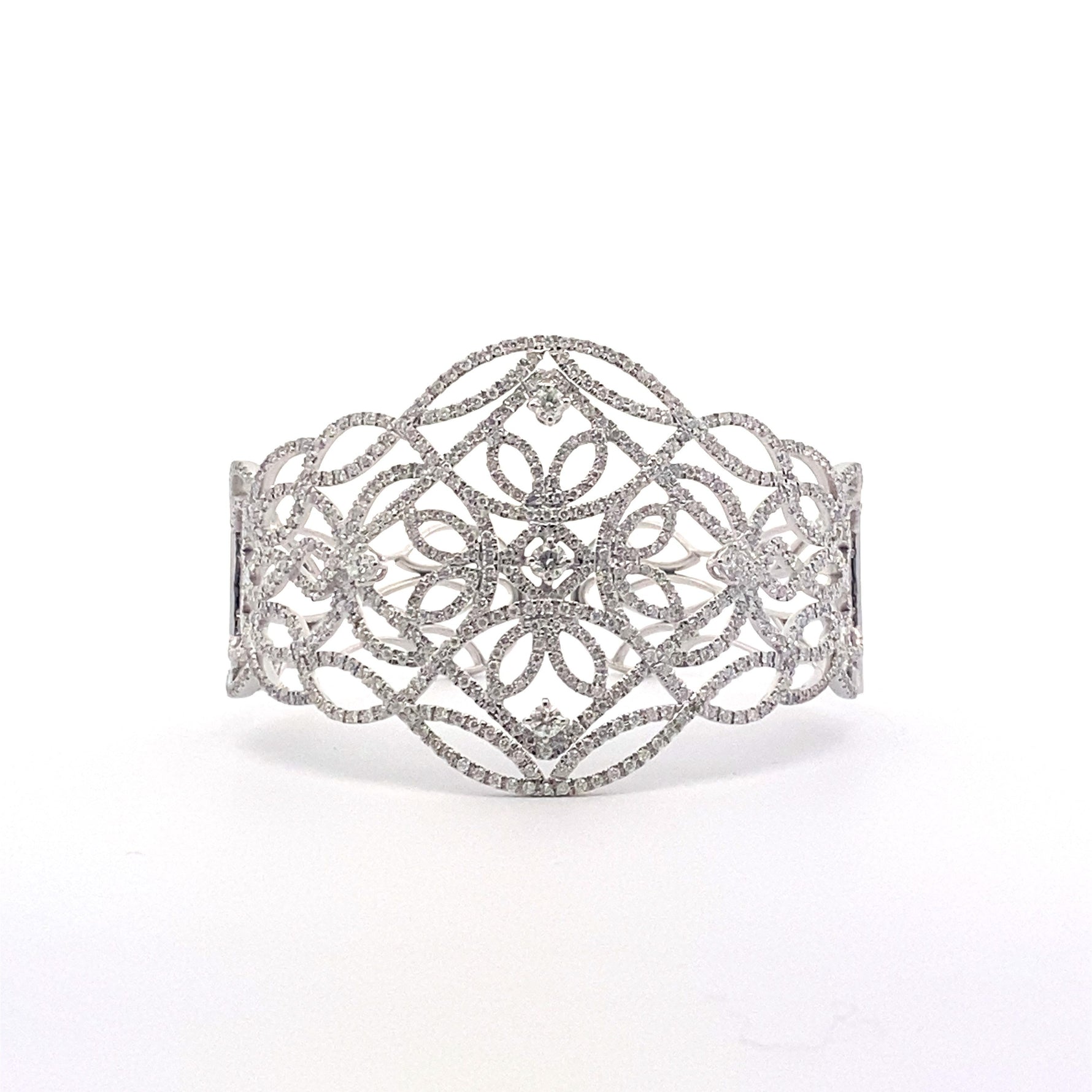 18K White Gold Italian Vintage Style 4.10 cttw Diamond Bangle Bracelet