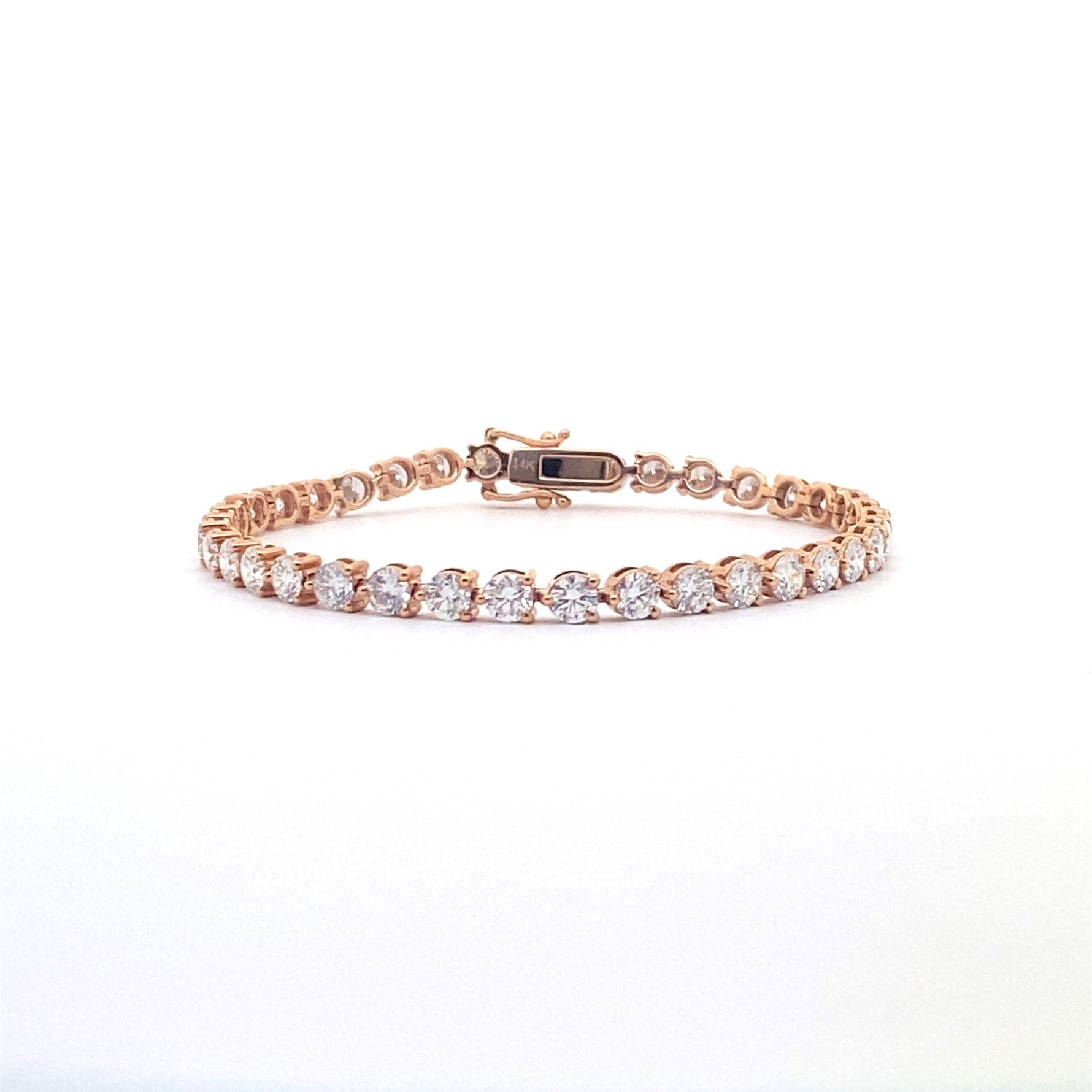 14K Rose Gold Round Brilliant Cut Lab Grown Diamond Tennis Bracelet. BRA-00015