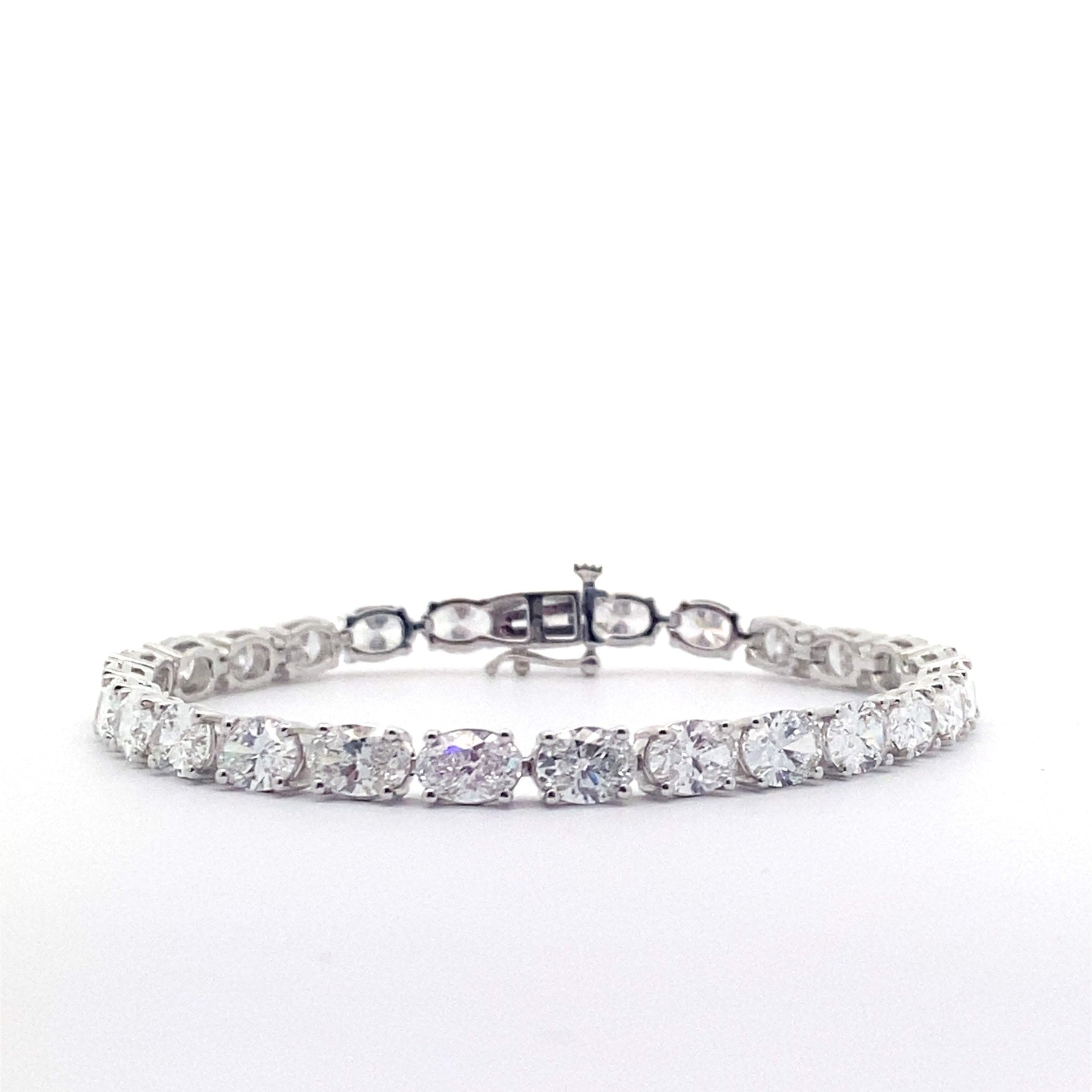 18K White Gold 13.50 cttw Oval Shape Lab Grown Diamond Tennis Bracelet