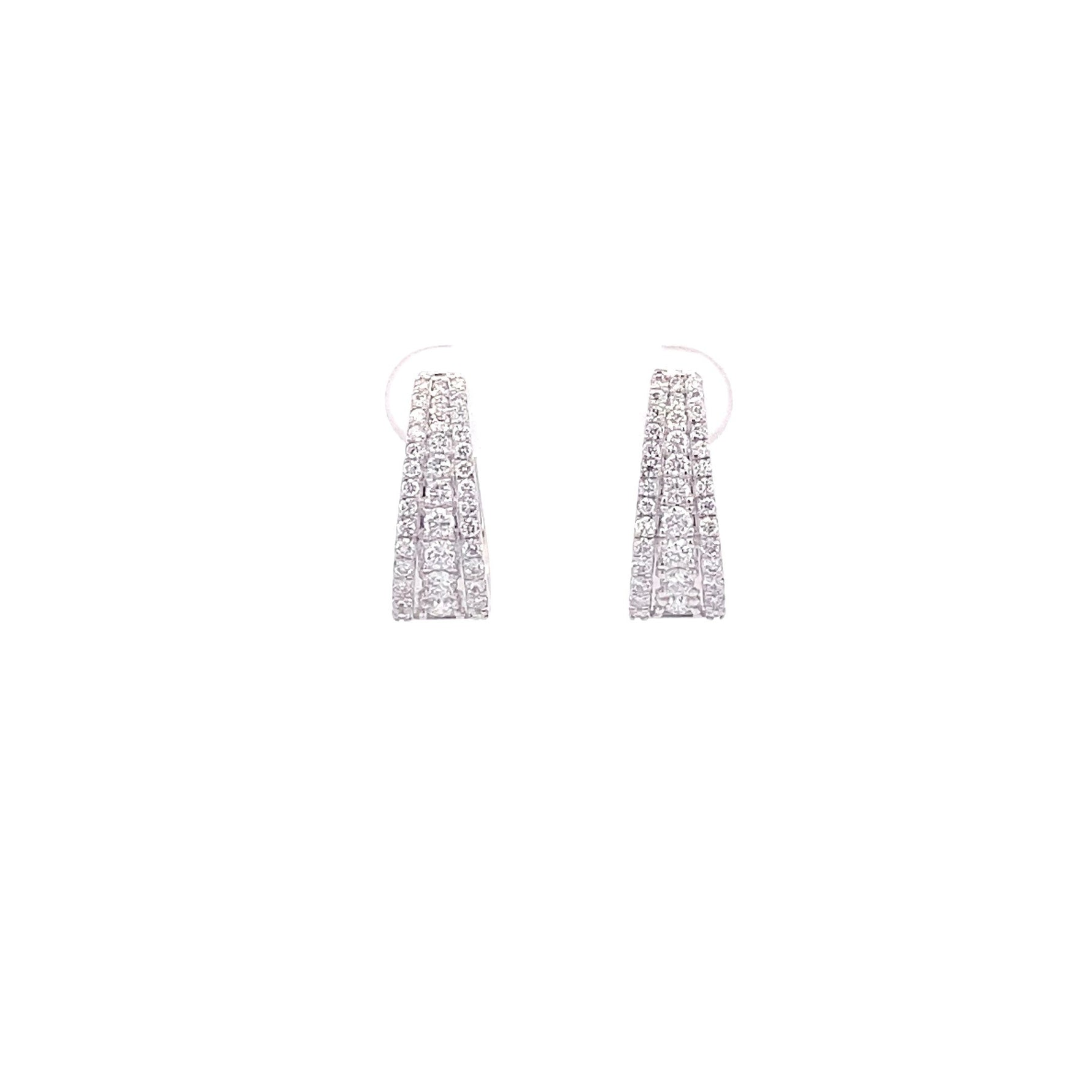 Crafted in 14K white gold, these oval hoop earrings bring a refined update to a timeless style. Set with 1.06 carats total of round brilliant lab grown diamonds, each stone is graded G in color and VS1 in clarity for clean, balanced sparkle. The elongated oval silhouette adds a modern touch, while the diamonds catch the light beautifully from every angle. Whether you’re dressing up a casual look or adding a finishing touch to something more elevated, these hoops offer everyday elegance with just the right amount of shine.