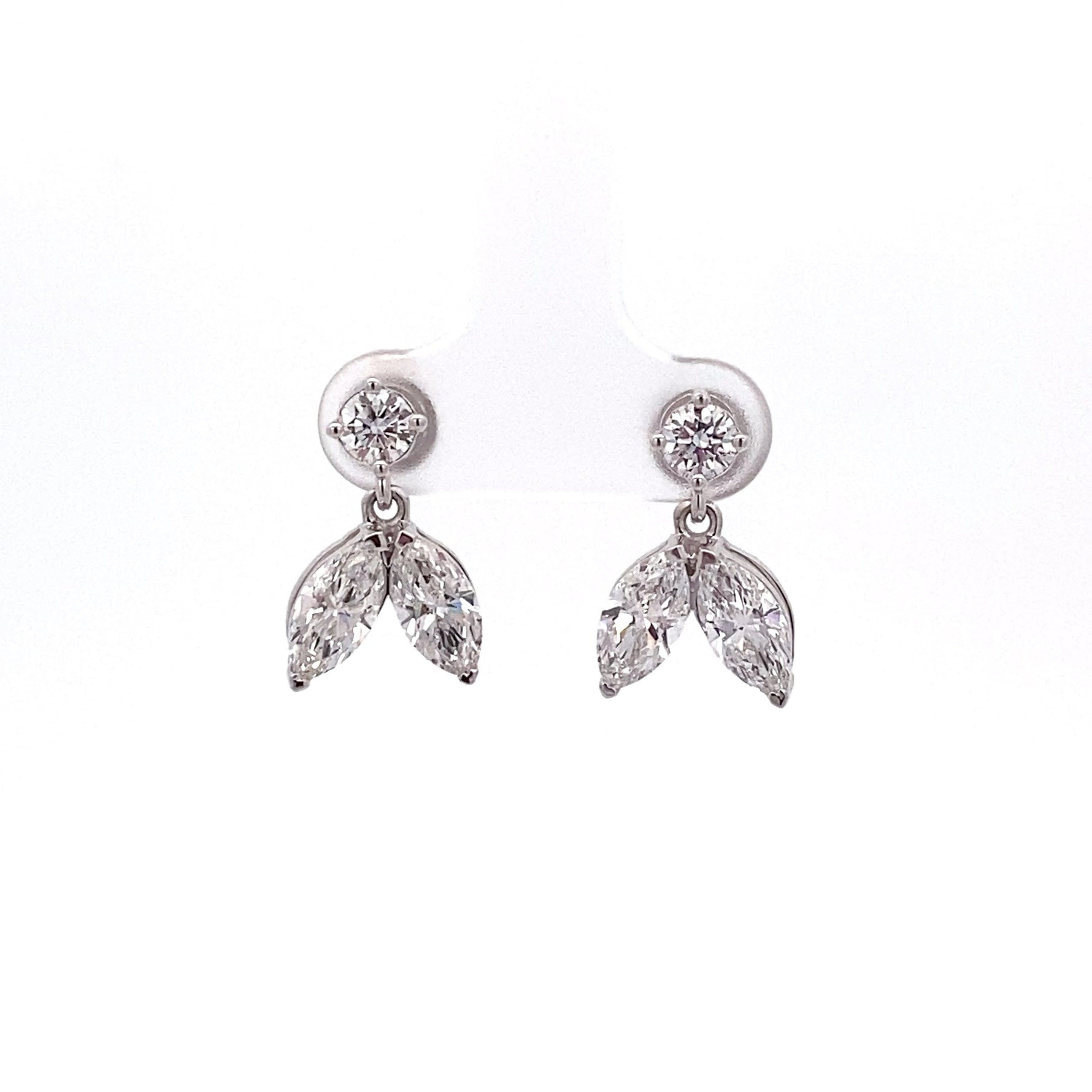 14K White Gold Marquise and Round Brilliant Cut Lab Grown Diamond Fancy Earrings
