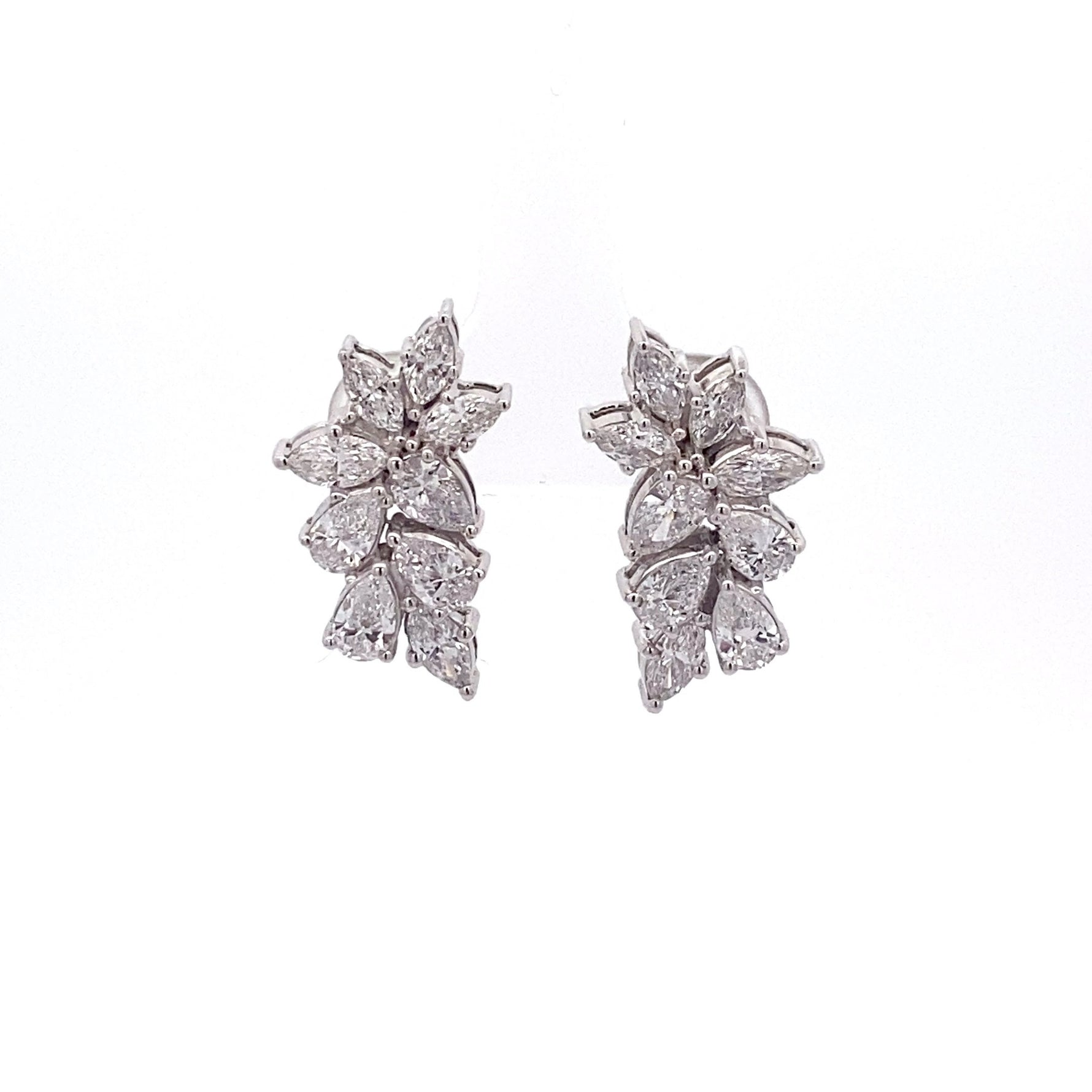Crafted in 14K white gold, these earrings feature a unique combination of marquise and pear shape lab grown diamonds, totaling 3.25 carats. Graded G in color and VS1 in clarity, the diamonds are arranged in a flowing, sculptural design that feels both modern and timeless. A statement piece with graceful movement and refined sparkle.