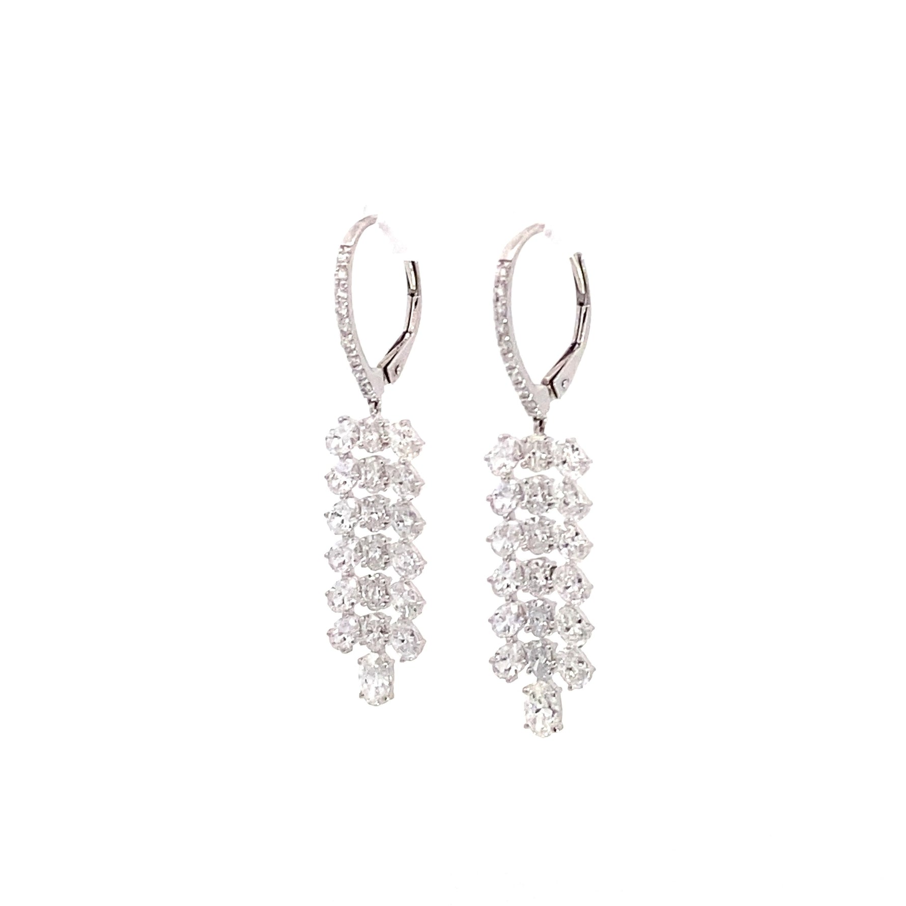 These 14K white gold dangling earrings showcase 4.14 carats total of oval shape lab grown diamonds, offering timeless elegance with a touch of movement. Graded F in color and VS1 in clarity, the diamonds are beautifully matched for symmetry and brilliance, creating a look that’s both graceful and eye-catching. Whether worn for a formal occasion or as a refined everyday statement, these earrings deliver effortless sophistication and radiant sparkle.