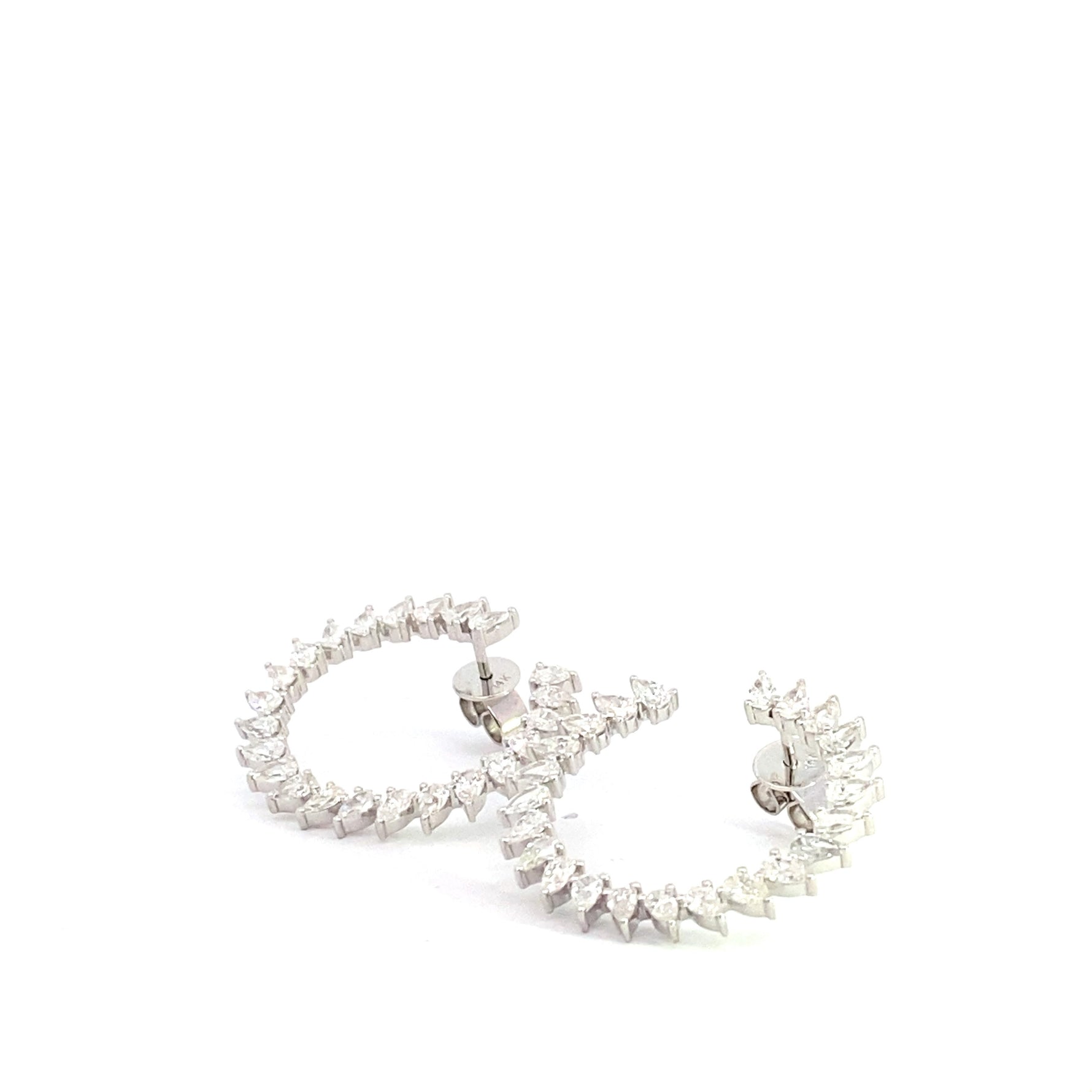 These 14K white gold open circle earrings bring a modern, sculptural twist to classic diamond design. Featuring 3.02 carats total of pear shape lab grown diamonds, each stone is graded F in color and VS1 in clarity, offering graceful sparkle with every movement. The open circle silhouette adds a sense of lightness and balance, making this pair a perfect blend of contemporary style and timeless elegance.