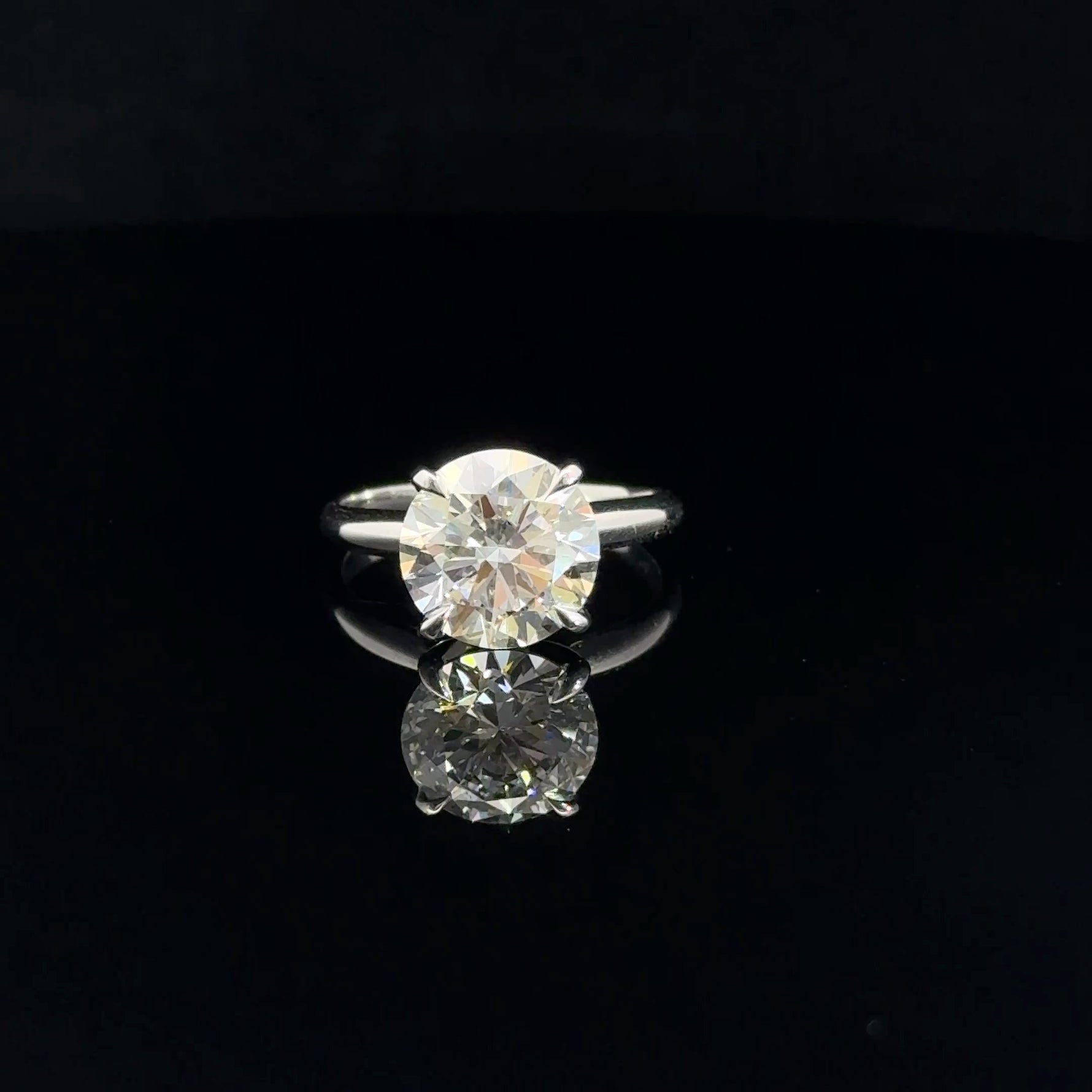 A breathtaking 3.52 carat round brilliant cut lab grown diamond takes center stage in this timeless solitaire engagement ring. Crafted in lustrous 14K white gold, the diamond is graded F in color and VS1 in clarity, offering exceptional brilliance and fire. IGI certified for quality and authenticity.