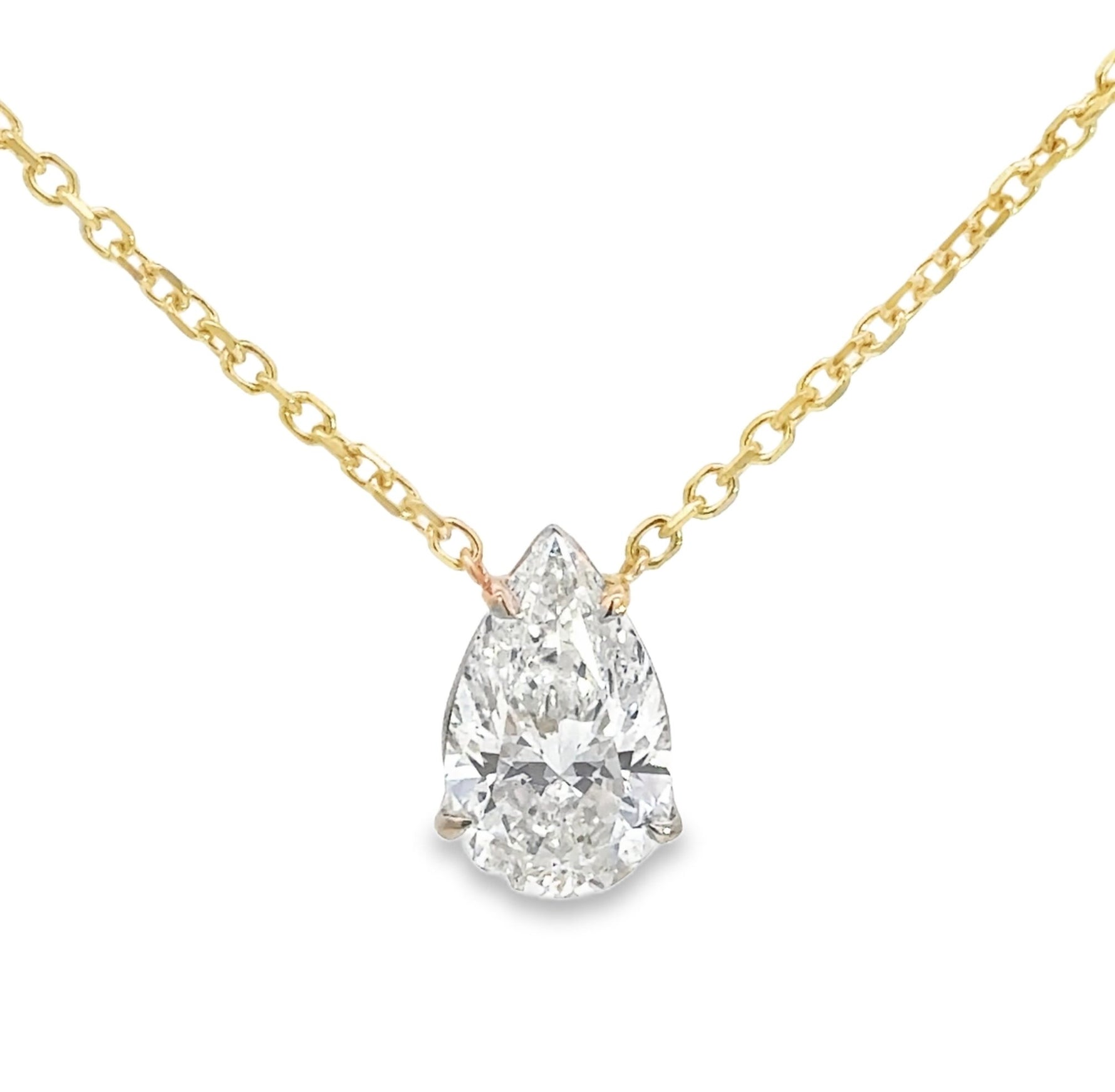 This elegant 14K yellow gold pendant features a striking 4.40-carat pear shape lab grown diamond, designed to captivate with its brilliance and sophistication. Graded F in color and VS2 in clarity, this IGI-certified diamond radiates exceptional fire, beautifully complemented by the warm hue of yellow gold. A timeless and refined piece, this pendant is perfect for making a statement on any occasion.