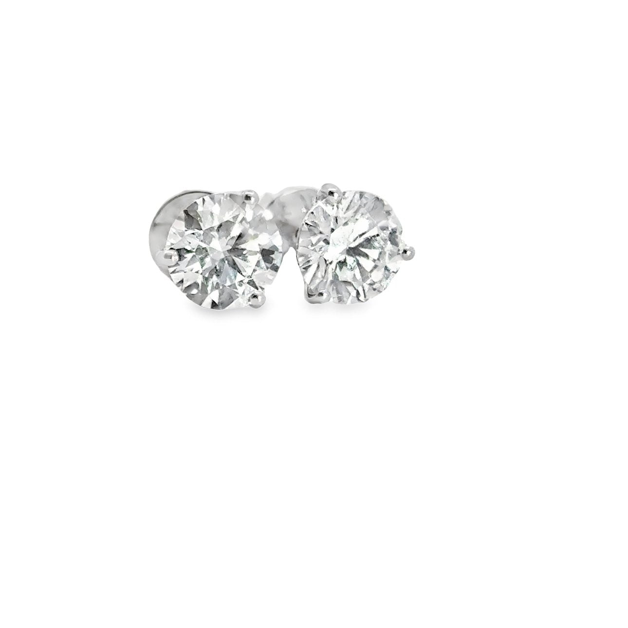 These 14K white gold stud earrings feature 4.09 carats total of round brilliant lab grown diamonds, set in a secure 3-prong setting. Graded G in color and VS1 in clarity, the diamonds offer bright, captivating sparkle and clarity. The classic round shape allows the diamonds to shine brilliantly, making these earrings a timeless addition to any jewelry collection. Perfect for any occasion, these earrings bring effortless elegance and sophistication.