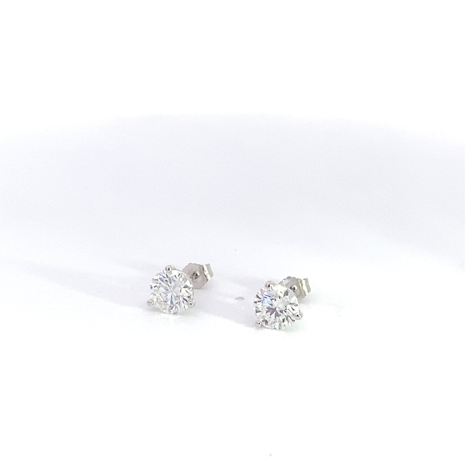These 14K white gold stud earrings feature 3.13 carats total of round brilliant cut lab grown diamonds, graded G in color and VVS2 in clarity. Certified by IGI (432023733, 442056729), the diamonds are set in a classic 3-prong martini setting that enhances their brilliance. With their exceptional sparkle and timeless design, these earrings make a stunning addition to any jewelry collection, perfect for both everyday wear and special occasions.