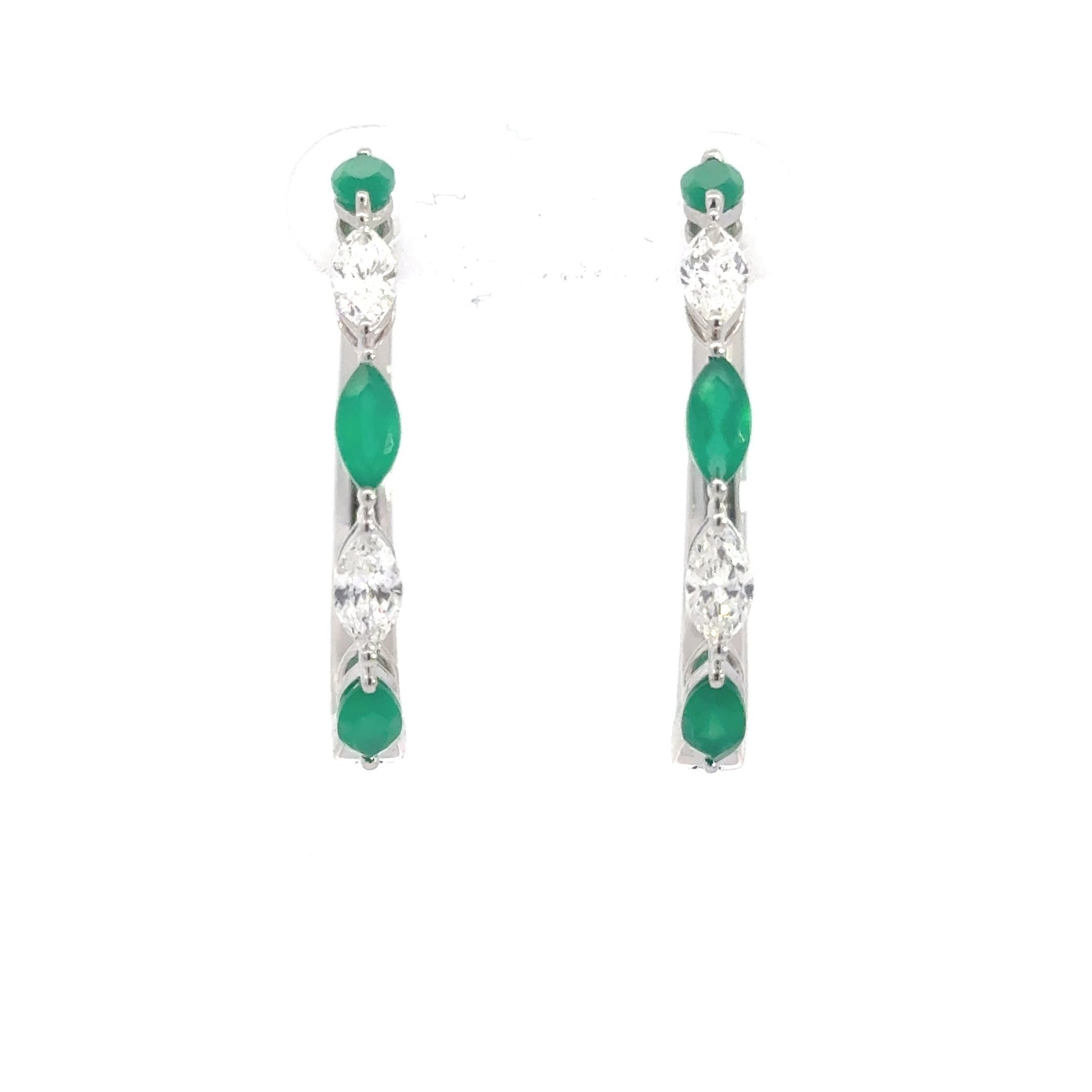 Vivid and refined, these hoop earrings feature a striking combination of rich green marquise cut emeralds and sparkling lab grown diamonds. Set in polished 14K white gold, the design includes 0.80 carats of diamonds and 1.80 carats of emeralds, with the diamonds graded F in color and VS1 in clarity for exceptional brilliance.