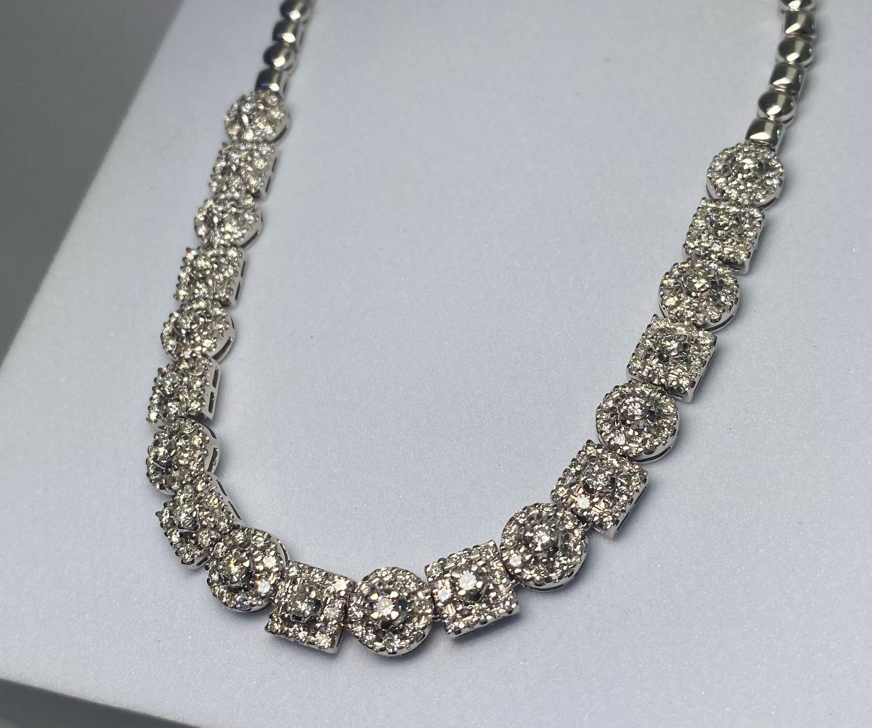 This exquisite 14K white gold necklace showcases 4.00 carats total of round brilliant cut diamonds, graded G in color and VS1 in clarity. Designed with an antique-inspired elegance, this piece captures the timeless charm of vintage aesthetics while maintaining a refined modern touch. Perfect for those who appreciate classic luxury, this necklace is a statement of sophistication, ideal for special occasions or everyday elegance.