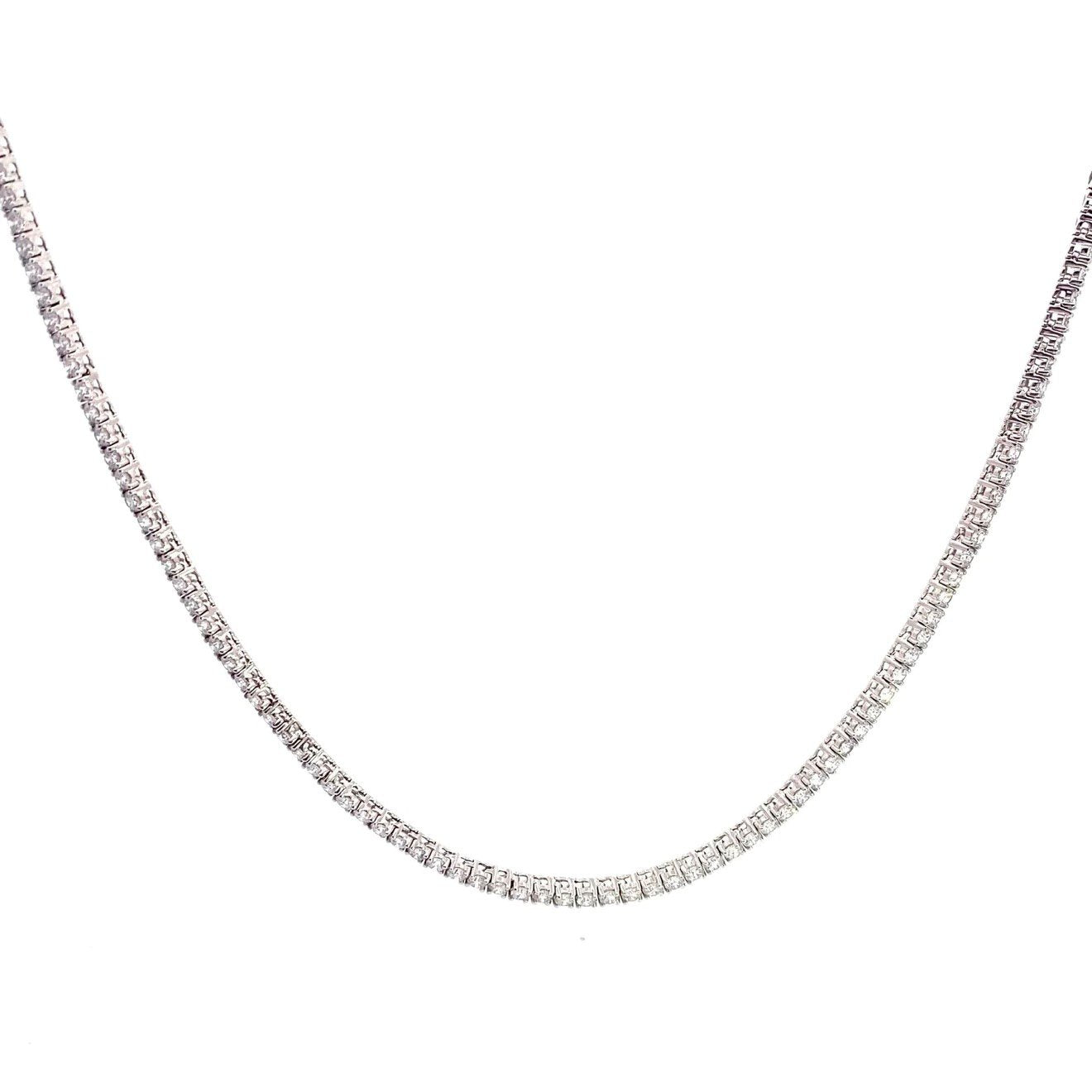 14K White Gold Round Brilliant Cut Lab Grown Diamond Tennis Necklace 13.12cttw