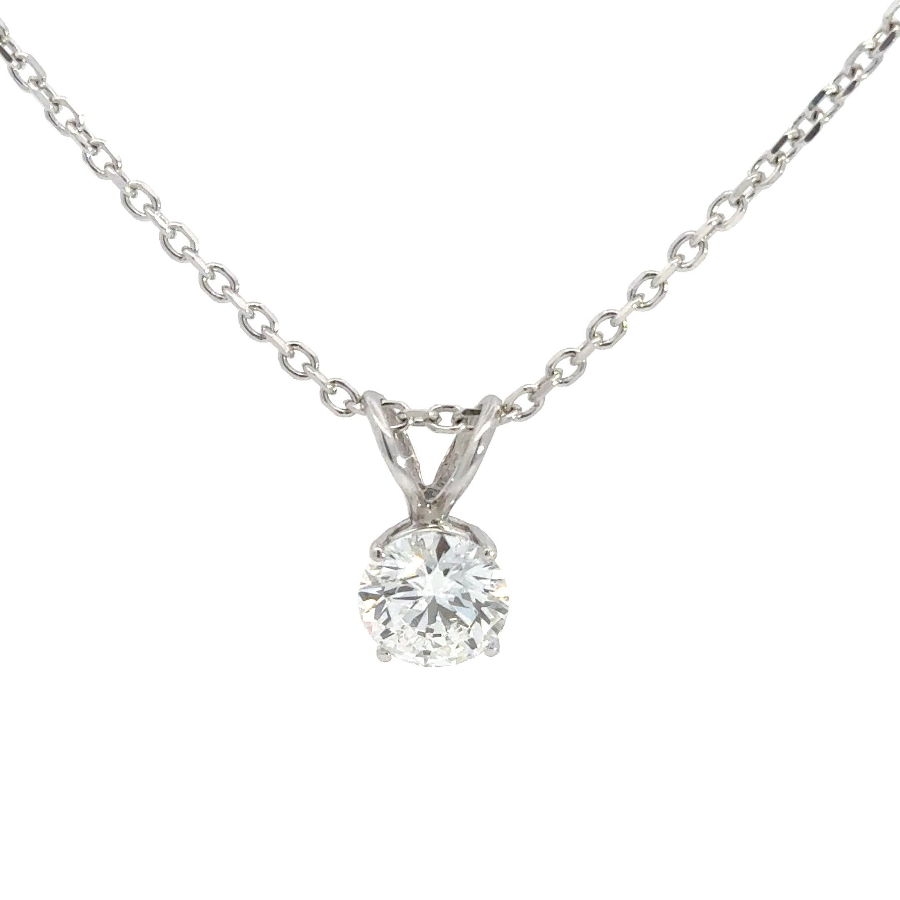 This elegant 14K white gold solitaire pendant features a stunning 2.06-carat round brilliant cut lab grown diamond, expertly crafted for maximum brilliance and fire. Graded F in color and VS1 in clarity, this IGI-certified diamond radiates exceptional sparkle, making it a timeless and sophisticated choice. Whether worn alone or layered, this pendant is a refined statement of luxury, perfect for any occasion.