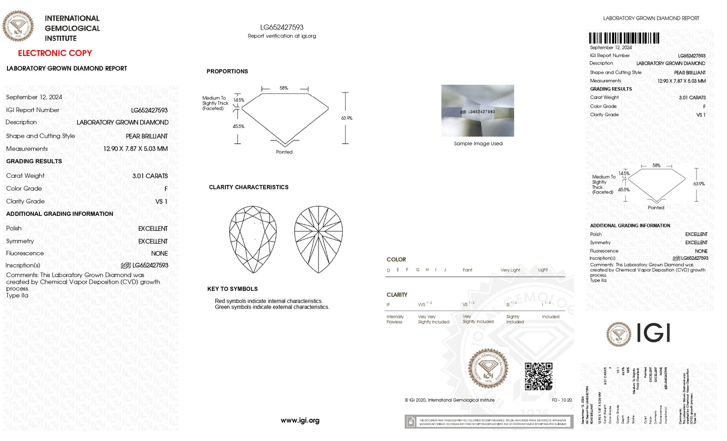 This is the report that details the unique characteristics of your diamond, issued by IGI—one of the most recognized and trusted gemological laboratories in the world.