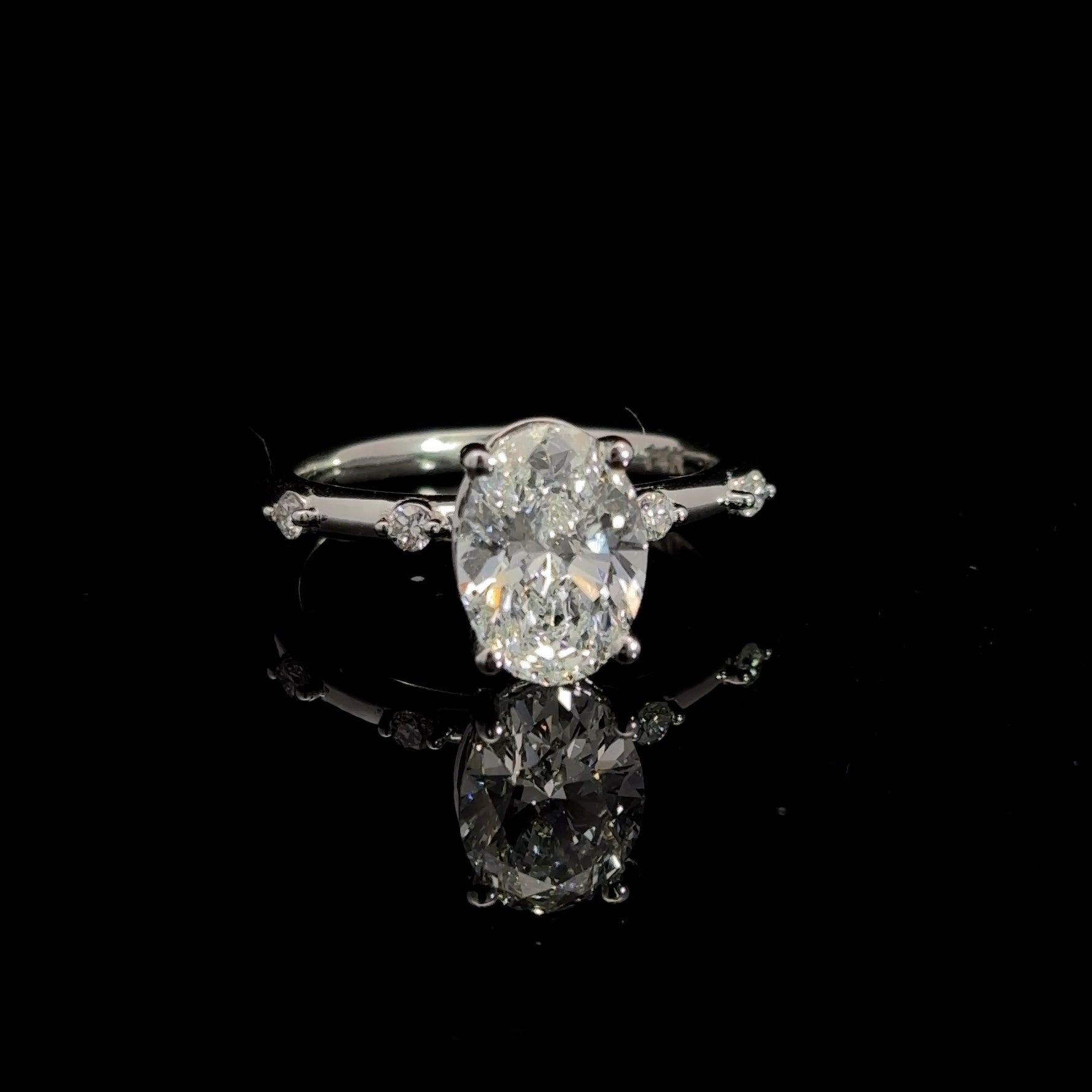 14K White Gold Round and Oval Lab Grown Diamond Engagement Ring 2.13cttw