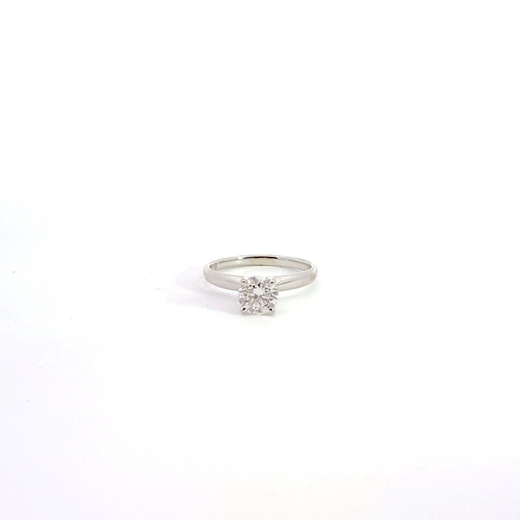 Disfrute del máximo lujo con nuestro solitario de diamantes redondos cultivados en laboratorio en oro blanco de 14 quilates y talla brillante. Con un impresionante peso total de 1,00 quilates, este diamante de color G y claridad VS1 añadirá un toque de elegancia a cualquier atuendo. Experimente la belleza y la ética de los diamantes cultivados en laboratorio. ENG-00019