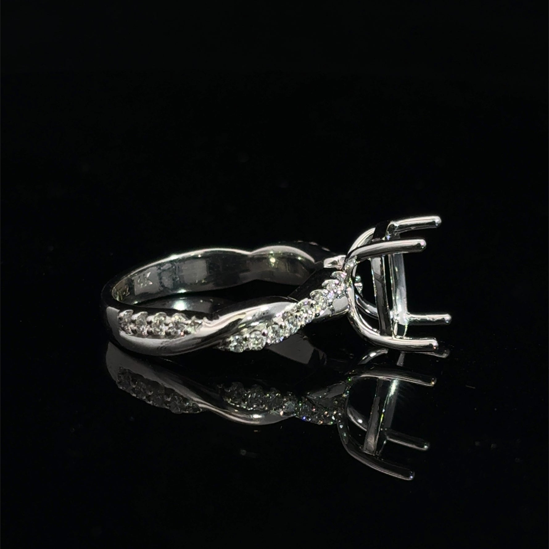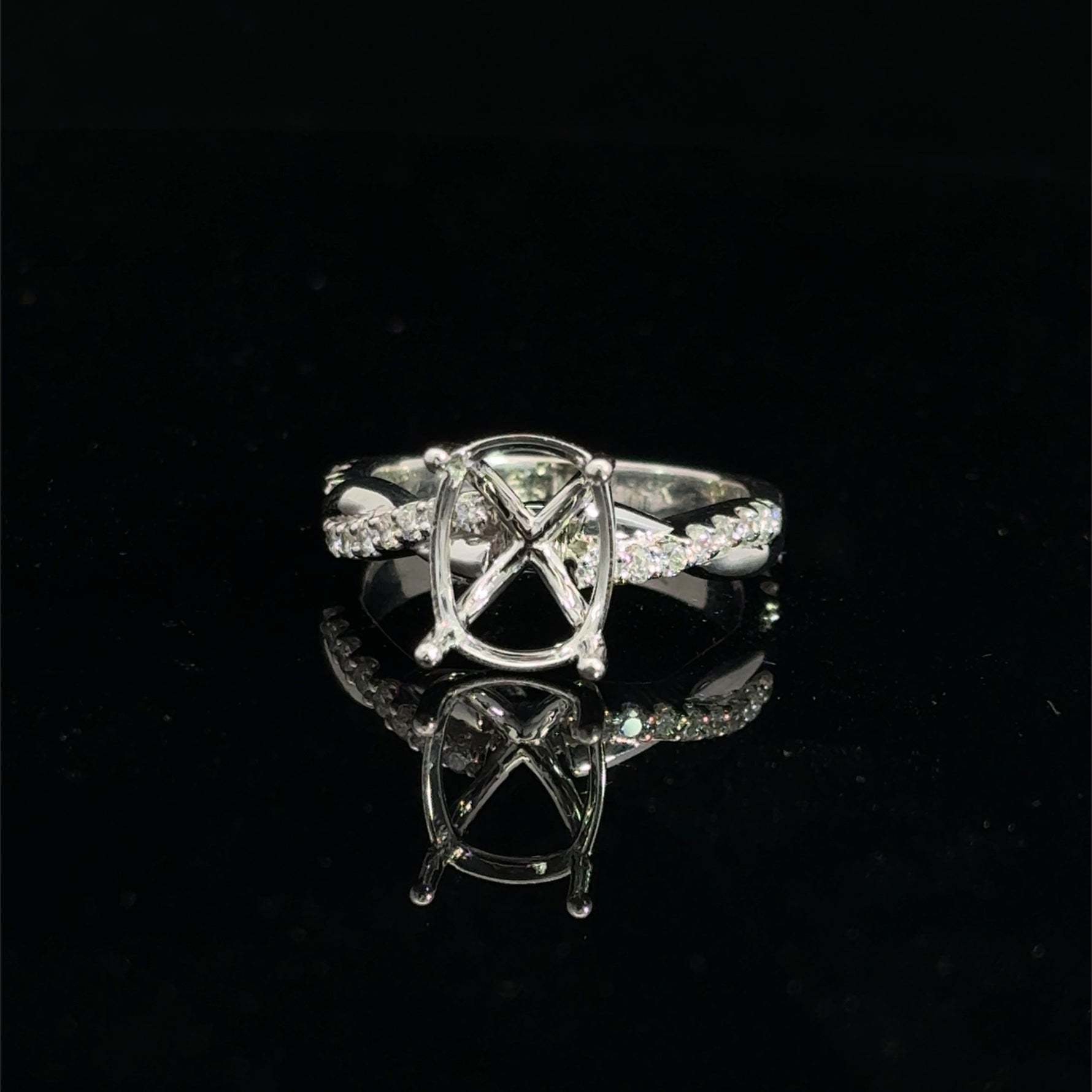 A graceful 14K White Gold Semi-Mount Engagement Ring designed to hold a 3.07ct cushion center stone. Accented with 0.25cttw of diamonds along the shank, this setting blends timeless elegance with modern brilliance — a perfect stage for your diamond to shine as the ultimate symbol of love.