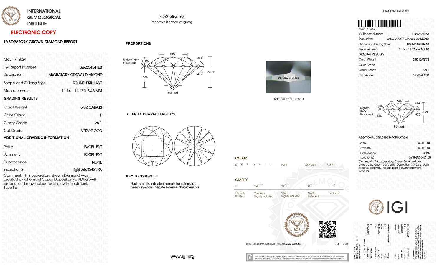 Este es el informe que detalla las características únicas de su diamante, emitido por IGI, uno de los laboratorios gemológicos más reconocidos y confiables del mundo.