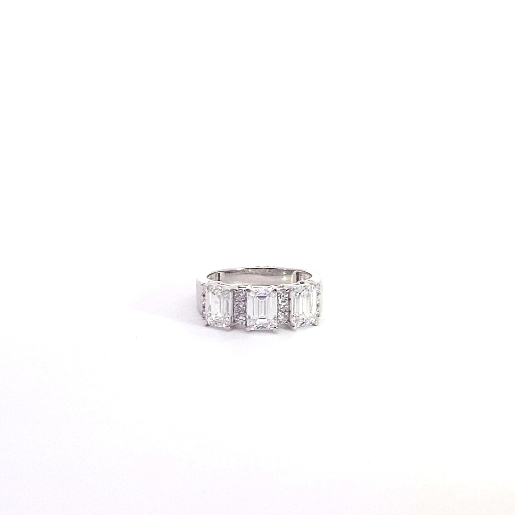 Impresionante y elegante, esta alianza de oro blanco de 14 quilates presenta una impresionante combinación de 2,75 ct de diamantes cultivados en laboratorio de talla esmeralda y 0,28 ct de talla brillante redonda, con un total de 3,03 quilates. Con grado de color G y claridad VS1, la alternancia de formas de los diamantes crea un refinado contraste de líneas limpias y un brillo radiante. Un diseño sofisticado, perfecto para combinar, celebrar un aniversario o lucirse solo.