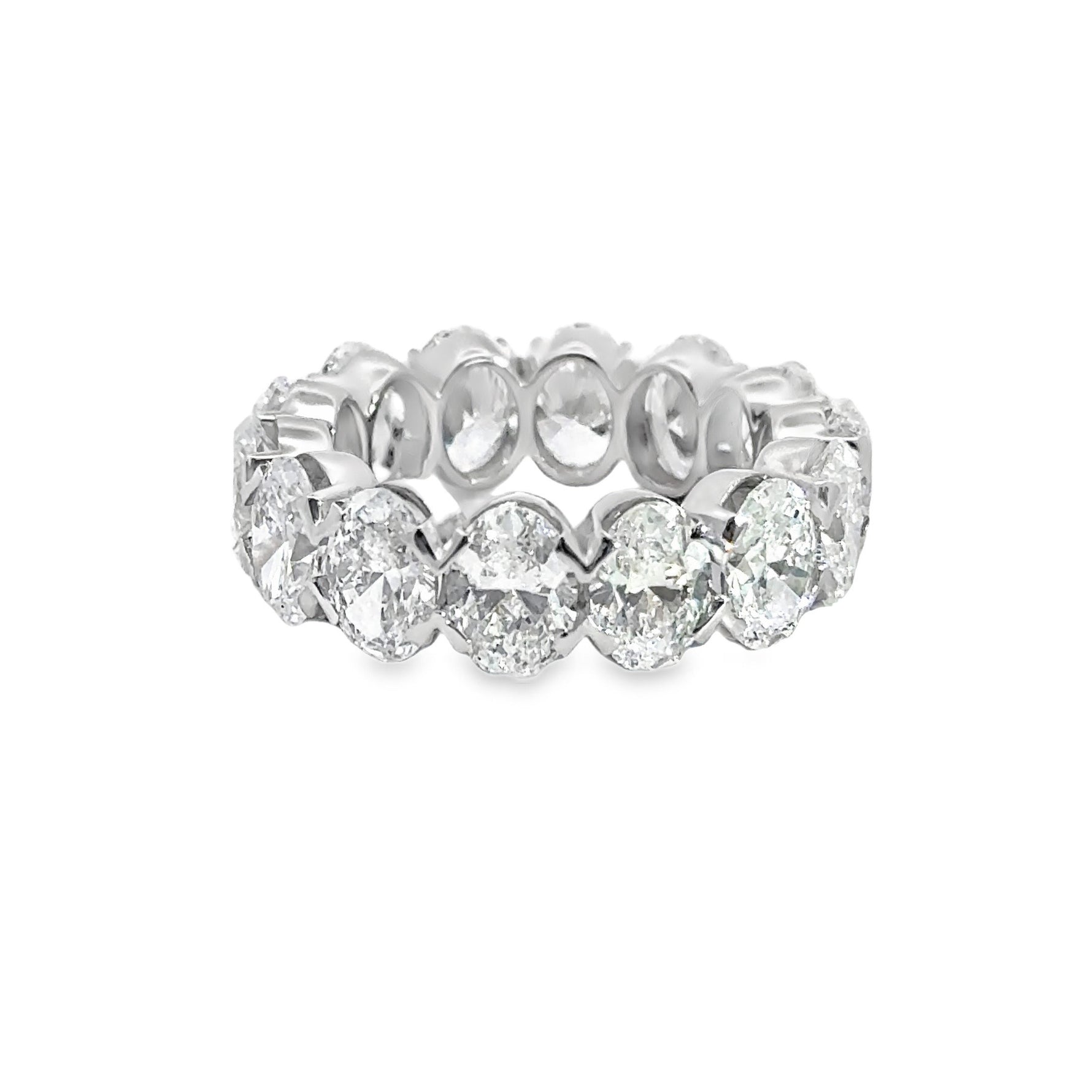 Audaz, elegante y hecha para brillar, esta alianza de eternidad de oro blanco de 14 quilates luce una impresionante hilera de diamantes cultivados en laboratorio de talla ovalada con un total de 10 quilates. Cada diamante tiene una clasificación de color D y una claridad VVS2, lo que le otorga un brillo excepcional y una belleza casi impecable. Una auténtica joya, esta alianza es perfecta para celebrar un acontecimiento importante o simplemente para destacar a diario.