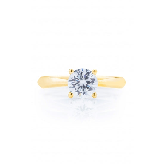 A refined take on the classic. This yellow gold solitaire features a round center setting, subtly accented with diamonds for an added touch of brilliance.