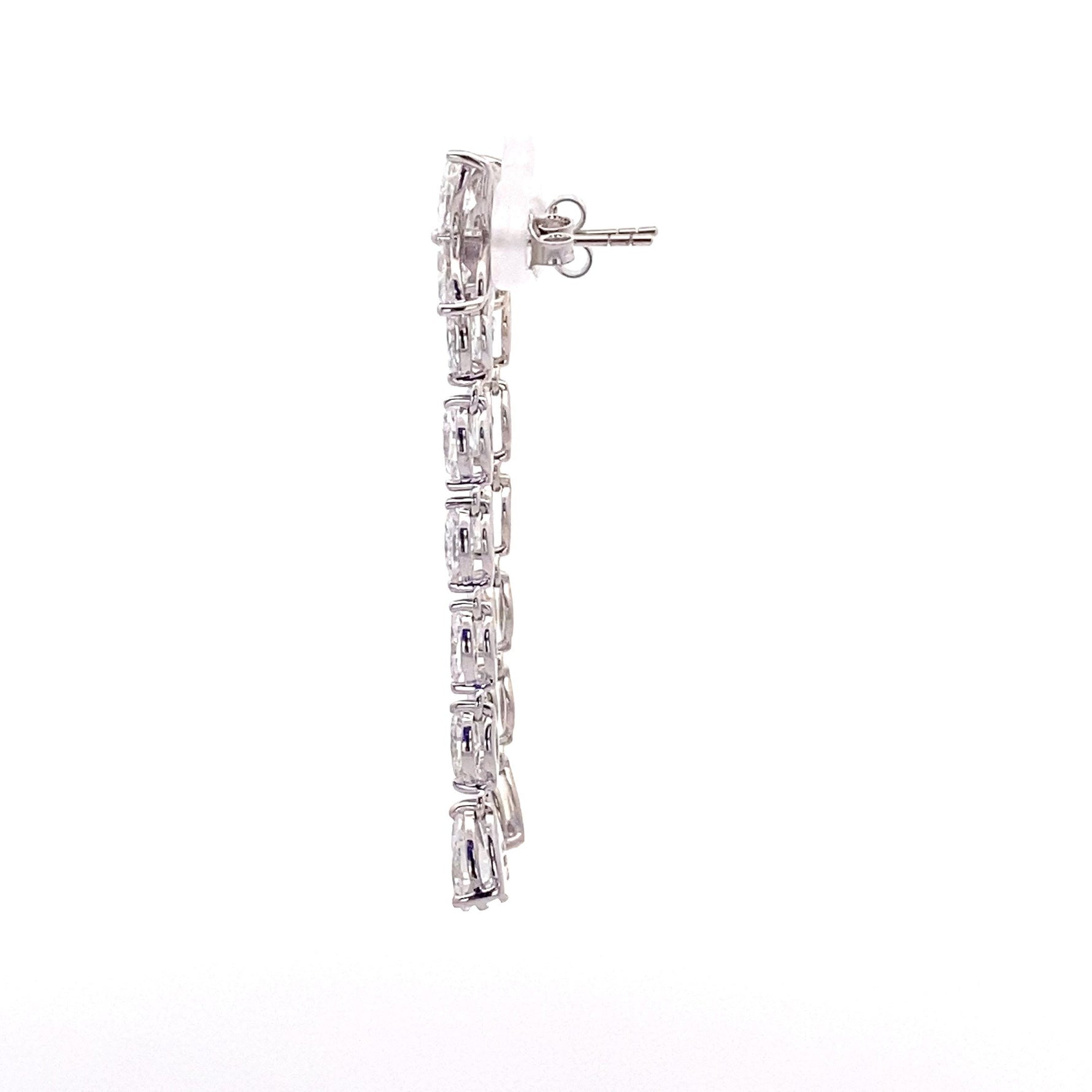 Estos pendientes colgantes de oro blanco de 14 quilates lucen 6,63 quilates de diamantes cultivados en laboratorio, talla marquesa y pera, dispuestos en un elegante diseño en cascada. Con grado de color F y claridad VS1, los diamantes ofrecen un brillo excepcional y un movimiento elegante. Una pieza audaz y refinada que aporta sofisticación y brillo a cualquier ocasión.