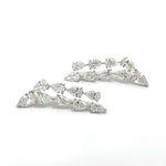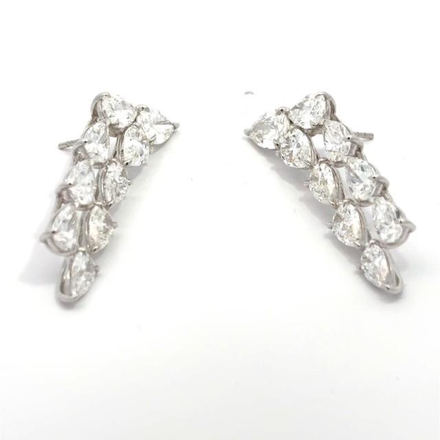 Striking lab grown diamond earrings crafted in 14K white gold, showcasing pear shape diamonds totaling 10.99 carats. With D–E color and VS1 clarity, this design offers bold sparkle and an elegant, elongated silhouette.