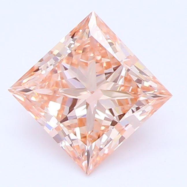 Diamante cultivado en laboratorio de talla princesa, color rosa anaranjado intenso y elegante, de 0,57 quilates, con claridad VS1