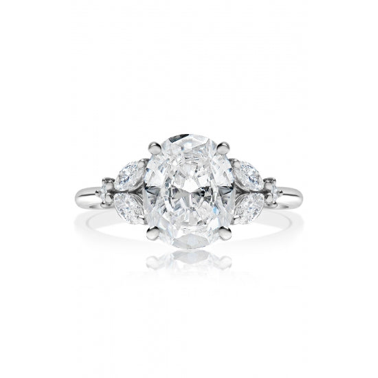 14K White Gold Sidestone Engagement Ring Semi Mounting (For 1.75–2.25 Ct Oval Center Stone)