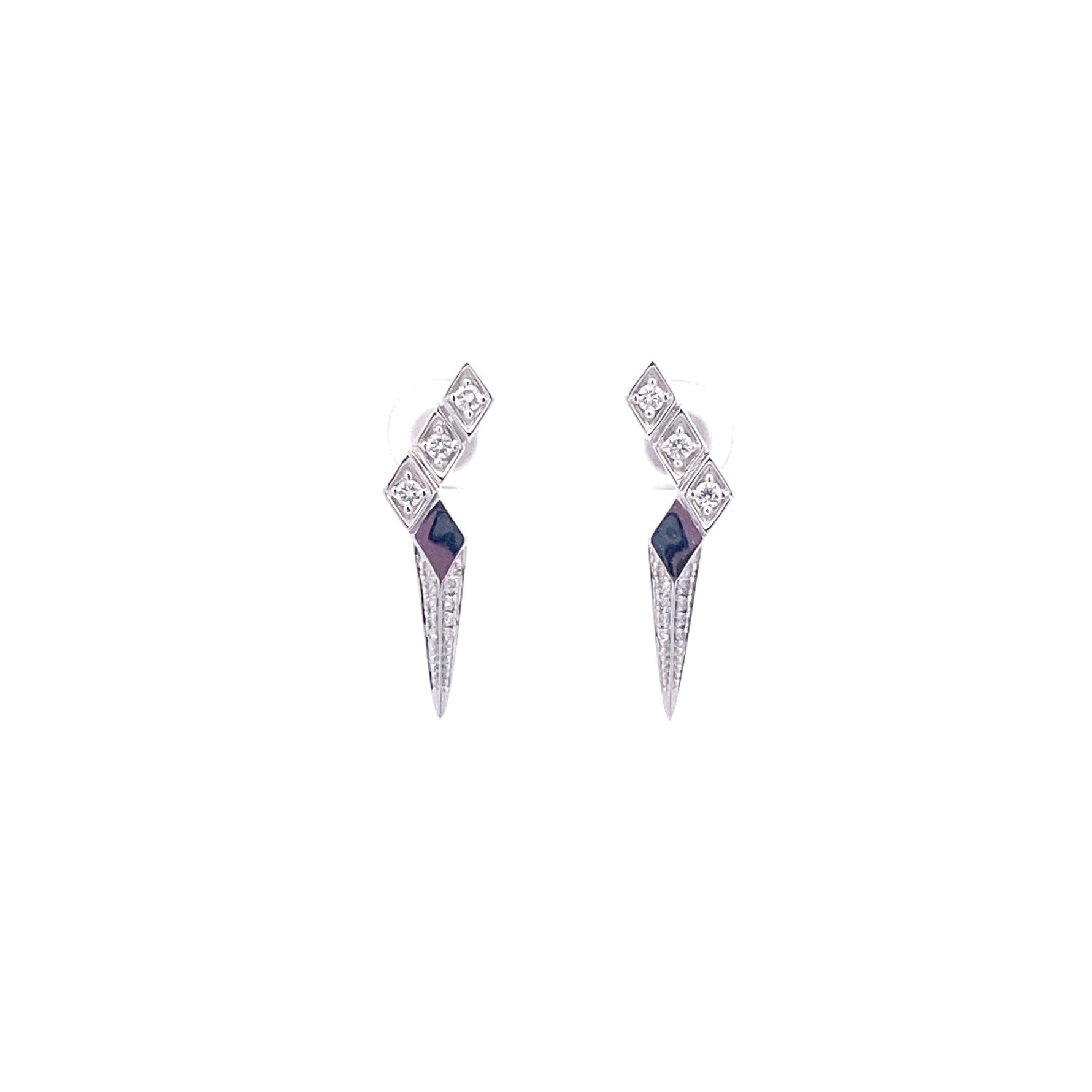 18K Solid White Gold Lightning Earrings 0.30cttw