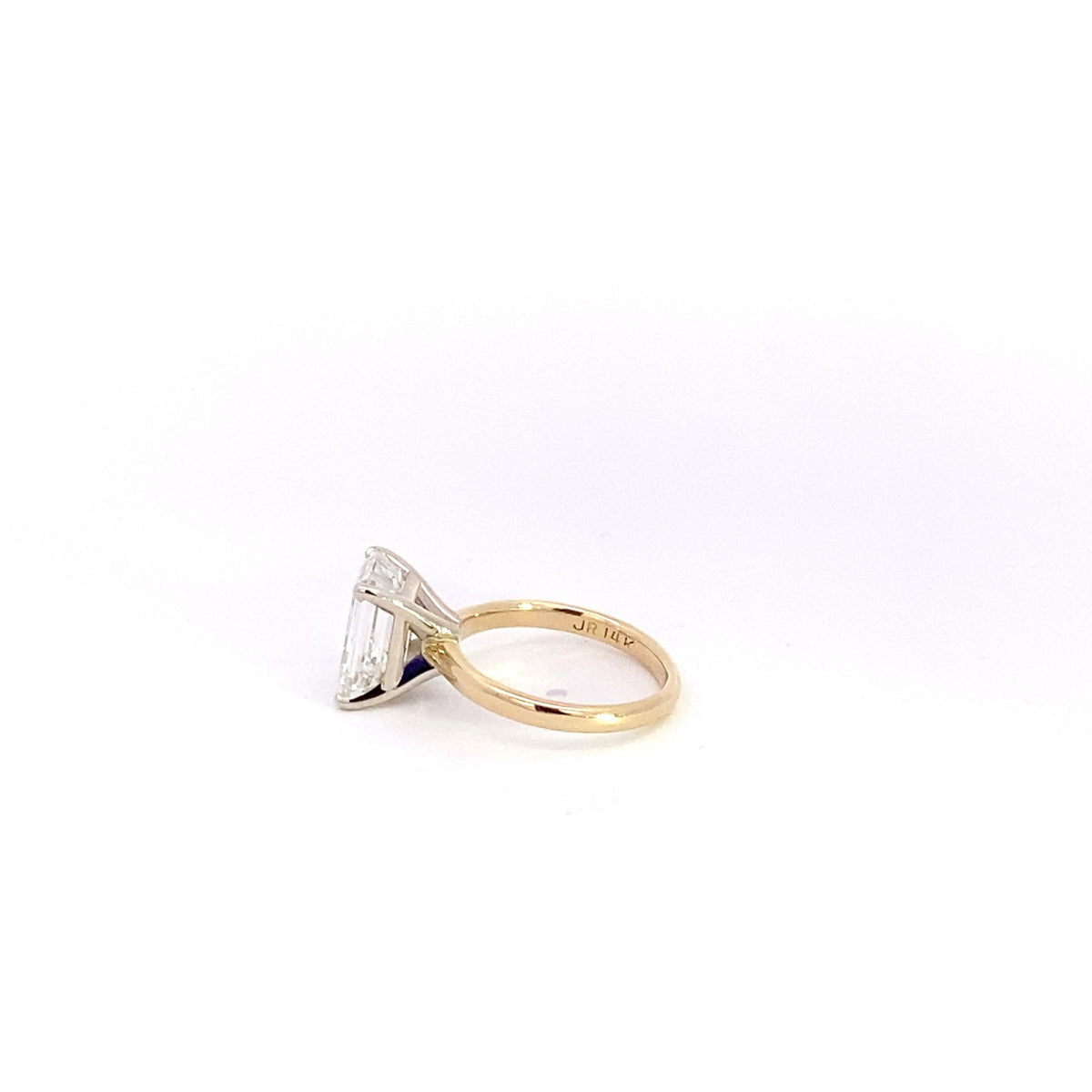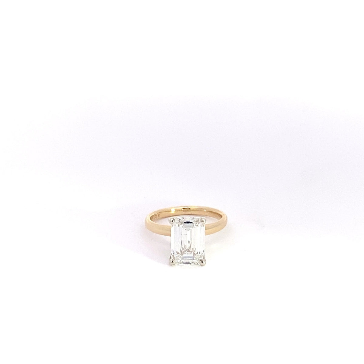 Sleek and refined, this 3.11 cttw emerald cut engagement ring glows in 14K yellow gold with clean lines and timeless symmetry. Crafted to feel bold yet elegant, it’s a modern classic made to celebrate love with quiet confidence.