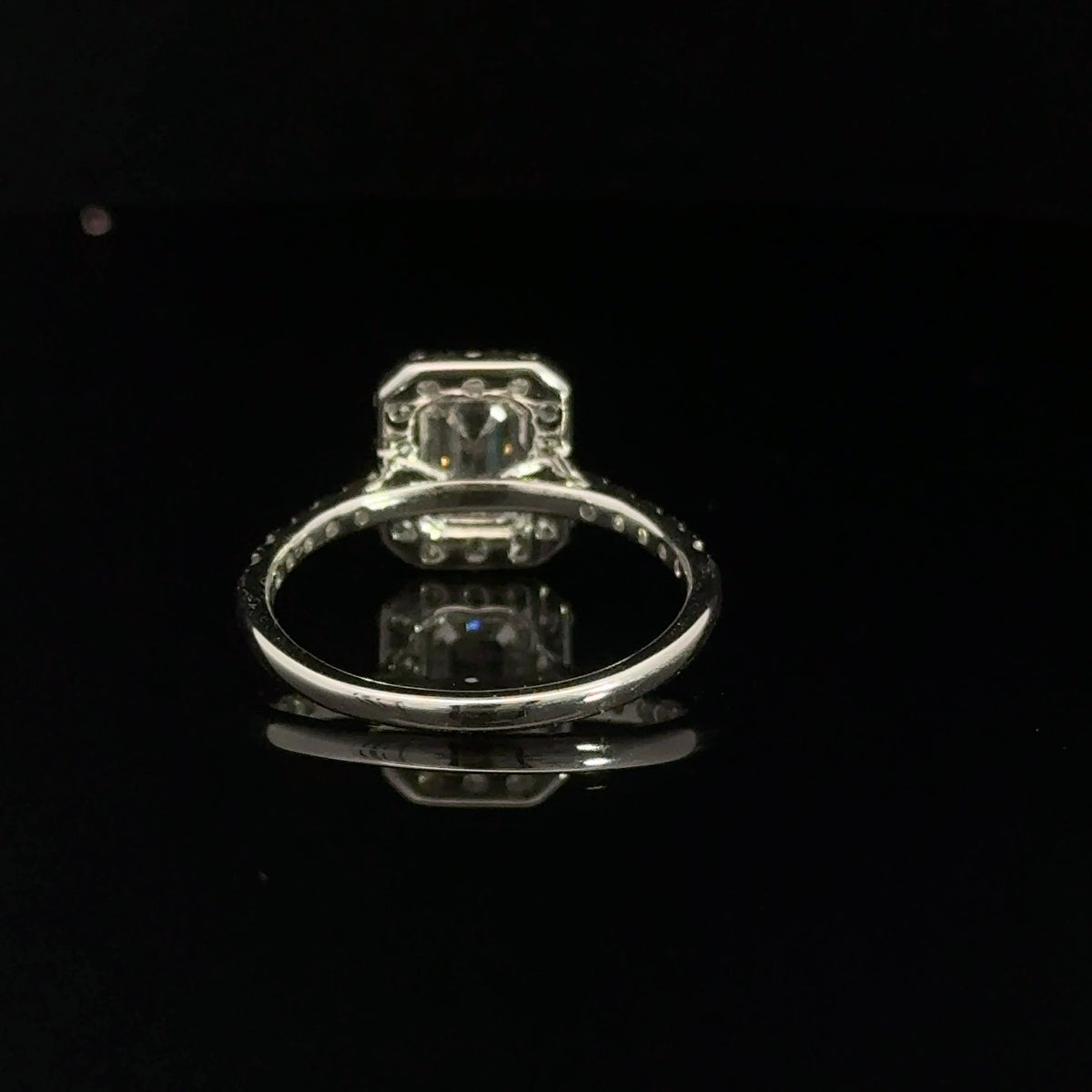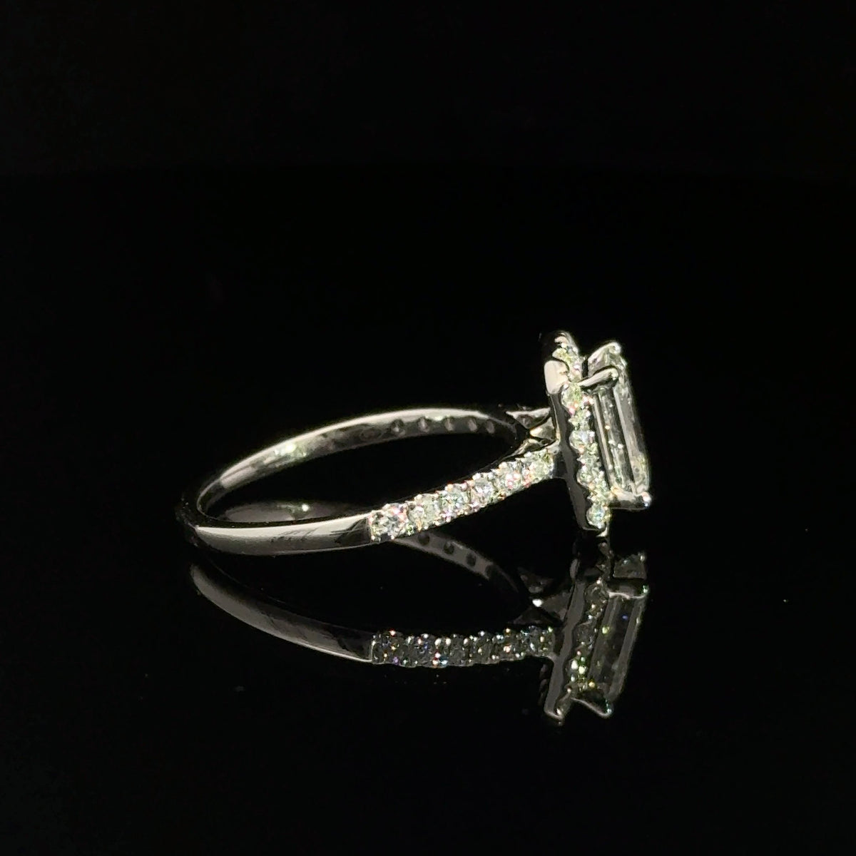 This 14K white gold engagement ring embodies purity, precision, and eternal devotion. Its 1.50-carat emerald cut lab grown center diamond glows with architectural brilliance, surrounded by a total of 2.00 carats in F–G color and VS1–VS2 clarity. With its mirror-like symmetry and understated elegance, this ring reflects the quiet strength of love — timeless, radiant, and beautifully real.