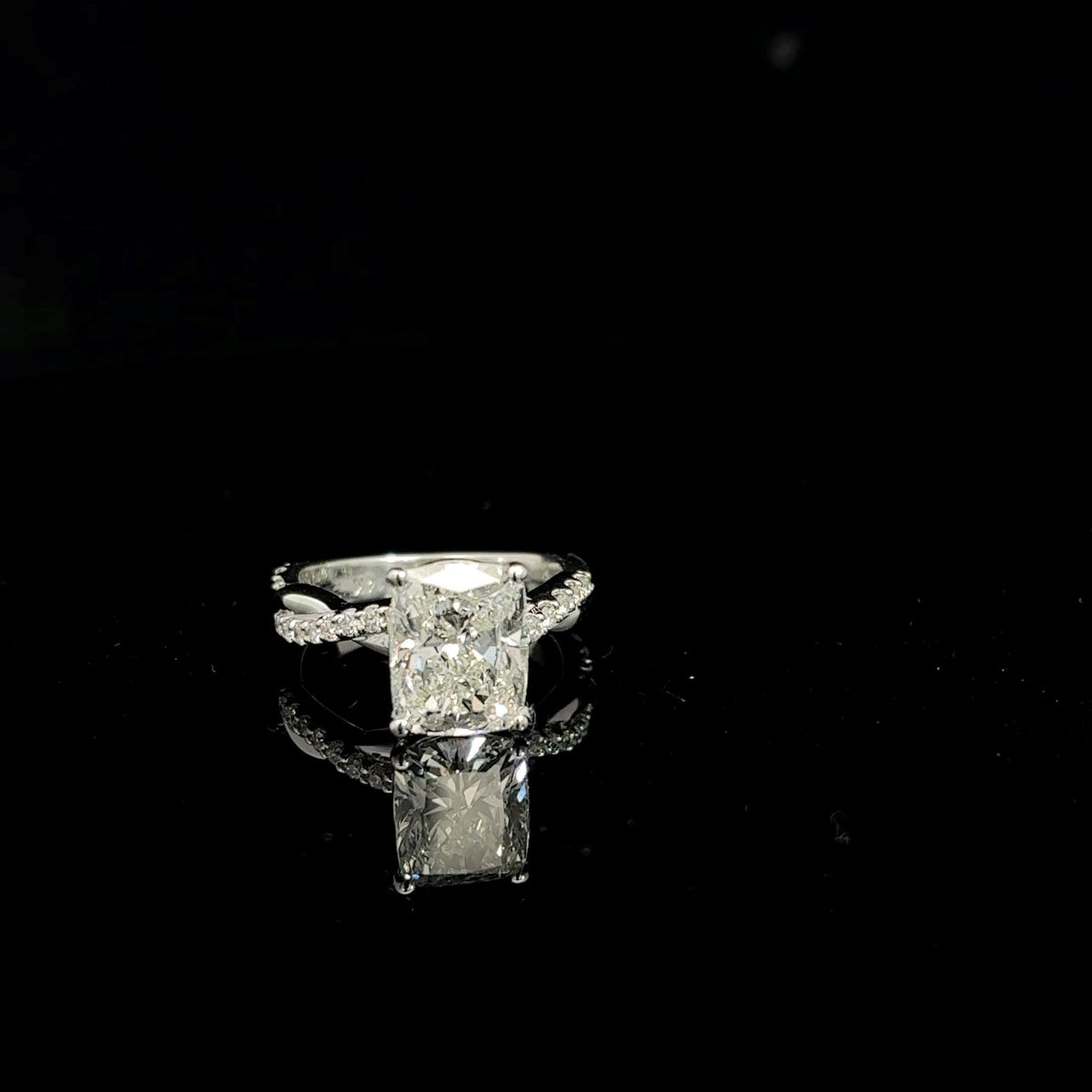 14K White Gold Cushion Cut Lab Grown Diamond Engagement Ring 3.32Cttw